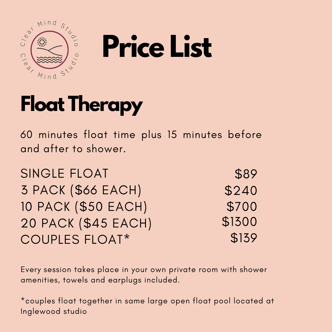 At Clear Mind Studio, we want everyone to benefit from floatation therapy. We offer two types of float rooms in Inglewood and Fremantle: