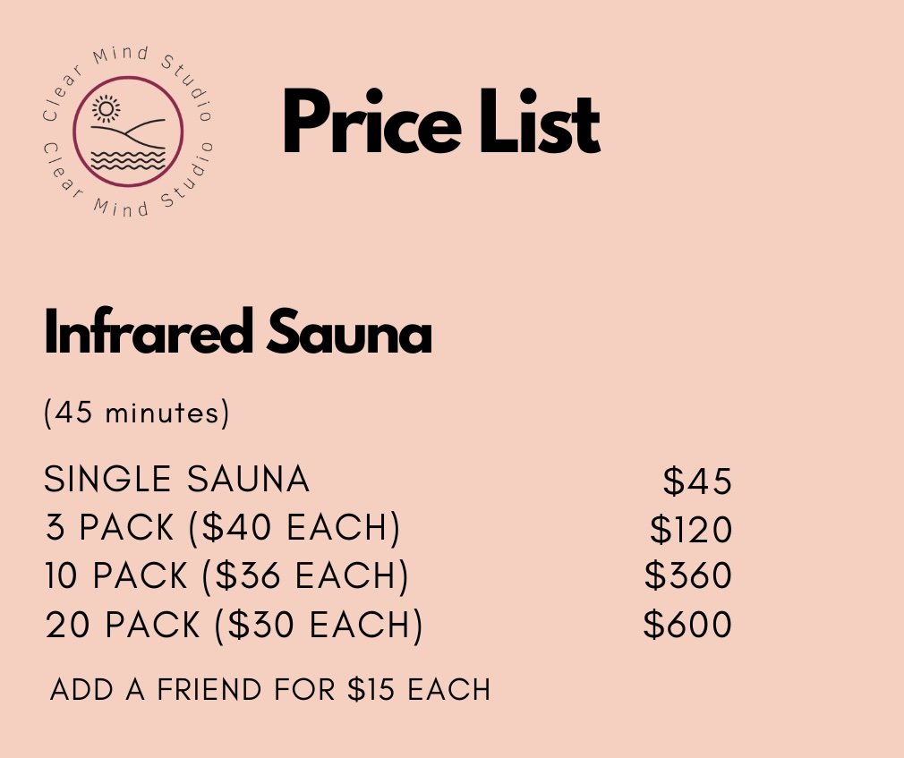“Clear Mind Studio has been my go-to place for the past year, and I can't recommend it enough. The infrared saunas are fantastic - they're equipped with Bluetooth and even have a shower inside the room for convenience.” - Customer Review